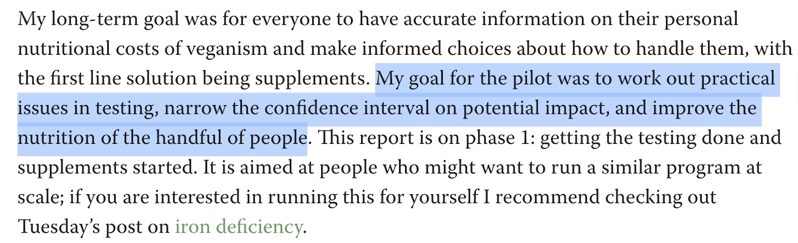 Vegan Nutrition Testing Project: Interim Report (LessWrong, EAForum)