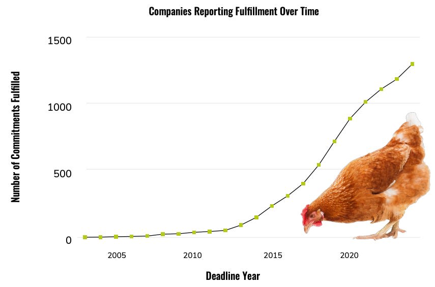 But so too is the good. The progress listed above is not the result of luck or fate. It is the result of people’s actions: advocates who relentlessly campaigned for reforms, volunteers who contacted companies and politicians, and donors who generously funded them.