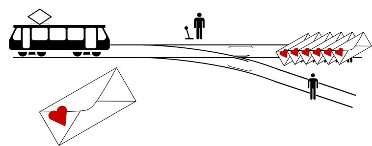 Each love letter, if delivered, leads to conception and birth of a new human. The trolley, unswitched, would destroy the love letters. If your ethos say yes, you would pull the lever to save the love letters, how many love letters would it take?