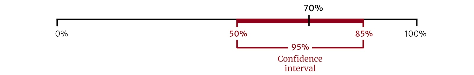 The 95% confidence interval represents how sure we are that there is a 70% chance this idea will be in the top two ideas. At this stage we had not done very much research in this area, though there are some strong indications that this is a good idea, such as how good of an intervention this is for farmed finfish.