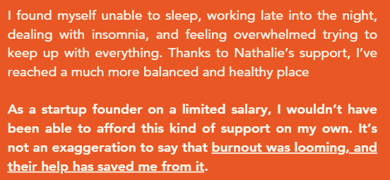 The results we got were, on average, better than professional therapists e.g. we retained almost 100% of founders, whereas the average therapist only retains 70% of their clientele (who are on average less discerning with their time than founders)