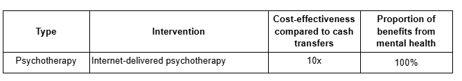 On average, people are 2 points out of 10 happier after their first six sessions. Each session costs just $5 to deliver (ALL costs inclusive—marketing, training of coach, supervision, management, etc).