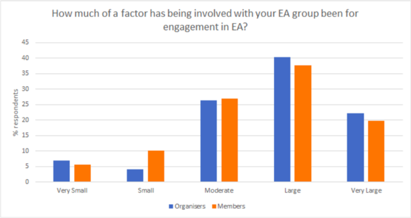 Most members report that groups are a large or very large factor in their engagement with EA