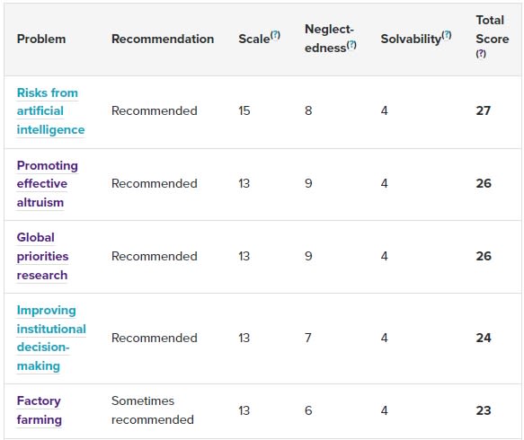 80000 hours has lots of concrete guides of each cause areas for us to work in, and there’s even an estimate the importance of each problem(though they claim it’s not very accurate) as below. But they uses x-risks angle to estimate. Like the”Scale” number is determined by the people we save(DALYs), so AI safety got the highest score because its extinction risk is the highest. But in s-risks, the main point should be “the suffering we reduce”. There are also lots of areas in s-risks, are there any cause priortization researches on s-risks?
