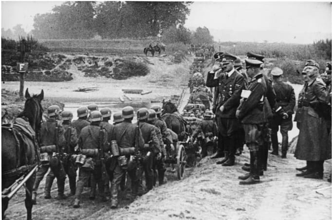 “Hitler watching German soldiers march into Poland in September 1939.” An example of a worry-number-1-style boundary violation. (Image source here.)