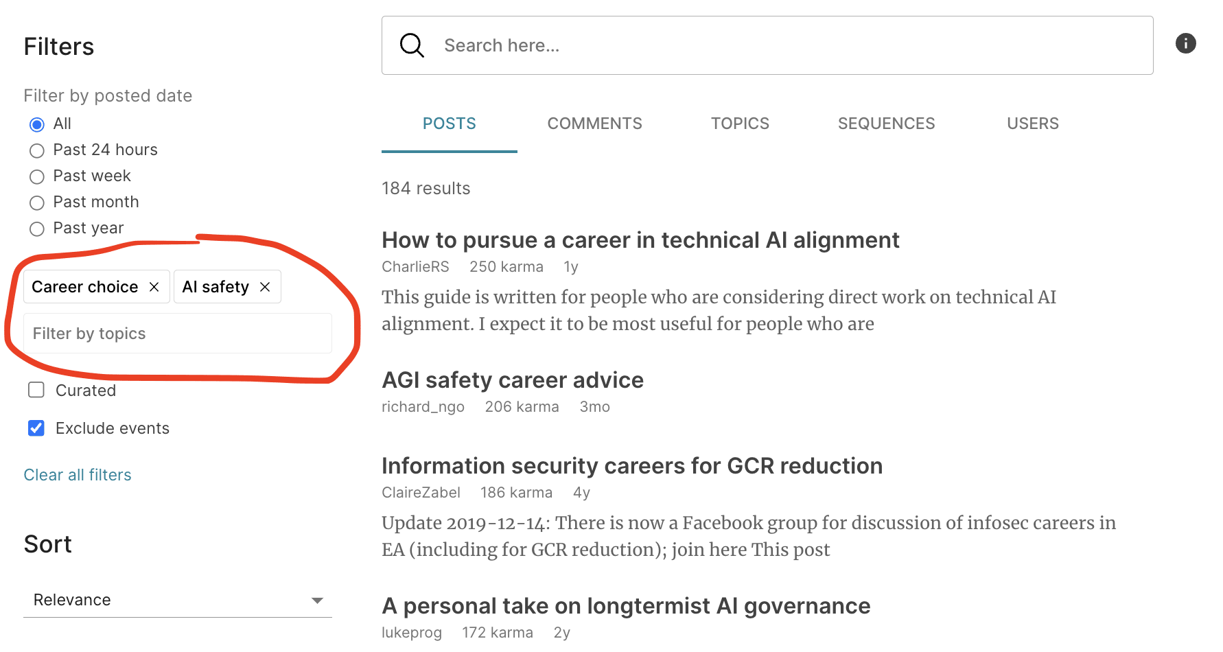 1) Being able to filter for multiple tags simultaneously. Mostly I want to be able to filter for “Career choice” + any other tag of my choice. E.g. AI or Academia to get career advice specifically for those career paths. But there are probably other useful combos too.