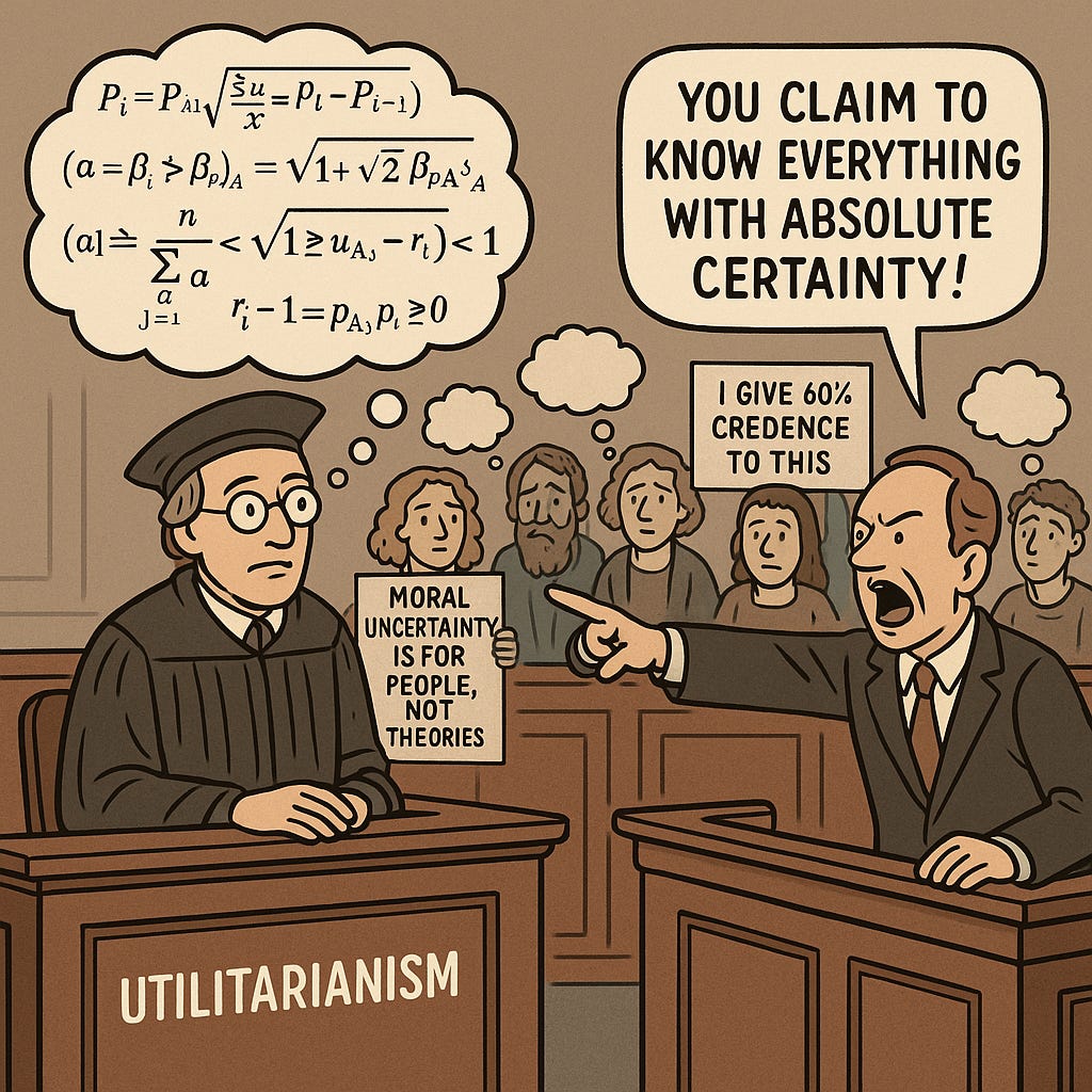 Sometimes confused people object to utilitarianism for making “confident” claims about deeply unclear or uncertain matters. (The most famous such confused person was Bernard Williams.)[1] Harvard philosopher Jimmy Doyle once endorsed the following argument: