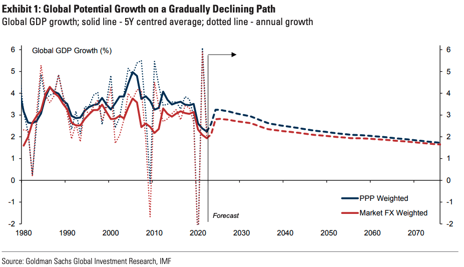 The main source is PwC’s 2017[67] simplified Solow growth model, which takes into account demographics, human capital like education, growth in the physical capital stock, and technological progress, which drives improvements in total factor productivity (TFP) adjusted (TFP roughly gauges if we get more efficient and not just use more labor).