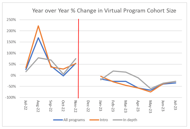 We didn’t start any virtual programs in December 2022 (although virtual programs are multiple months long, so there were virtual programs starting in earlier months that were ongoing at the time). So it’s not the case that we had data here and didn’t publish it!