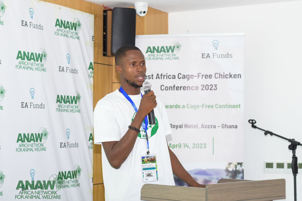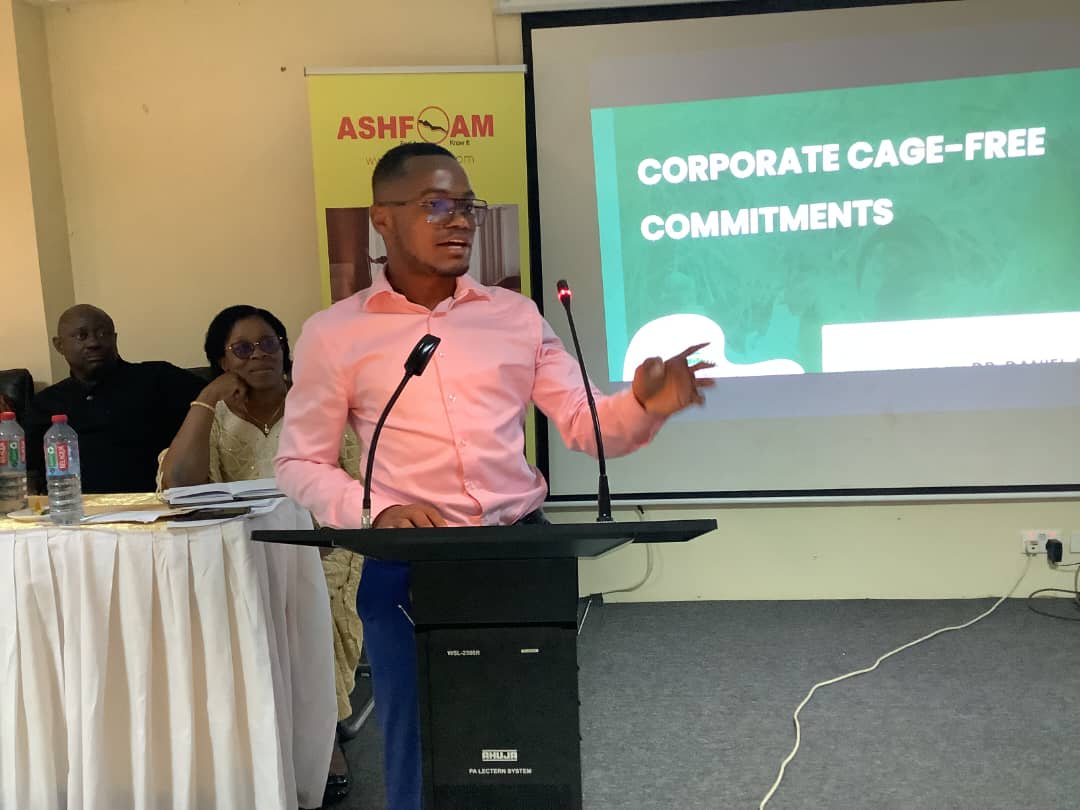 Dr. Richard Dogbatse, Community Affairs at AWL speaking at ANAW West Africa Cage-Free Chicken Conference 2023.
