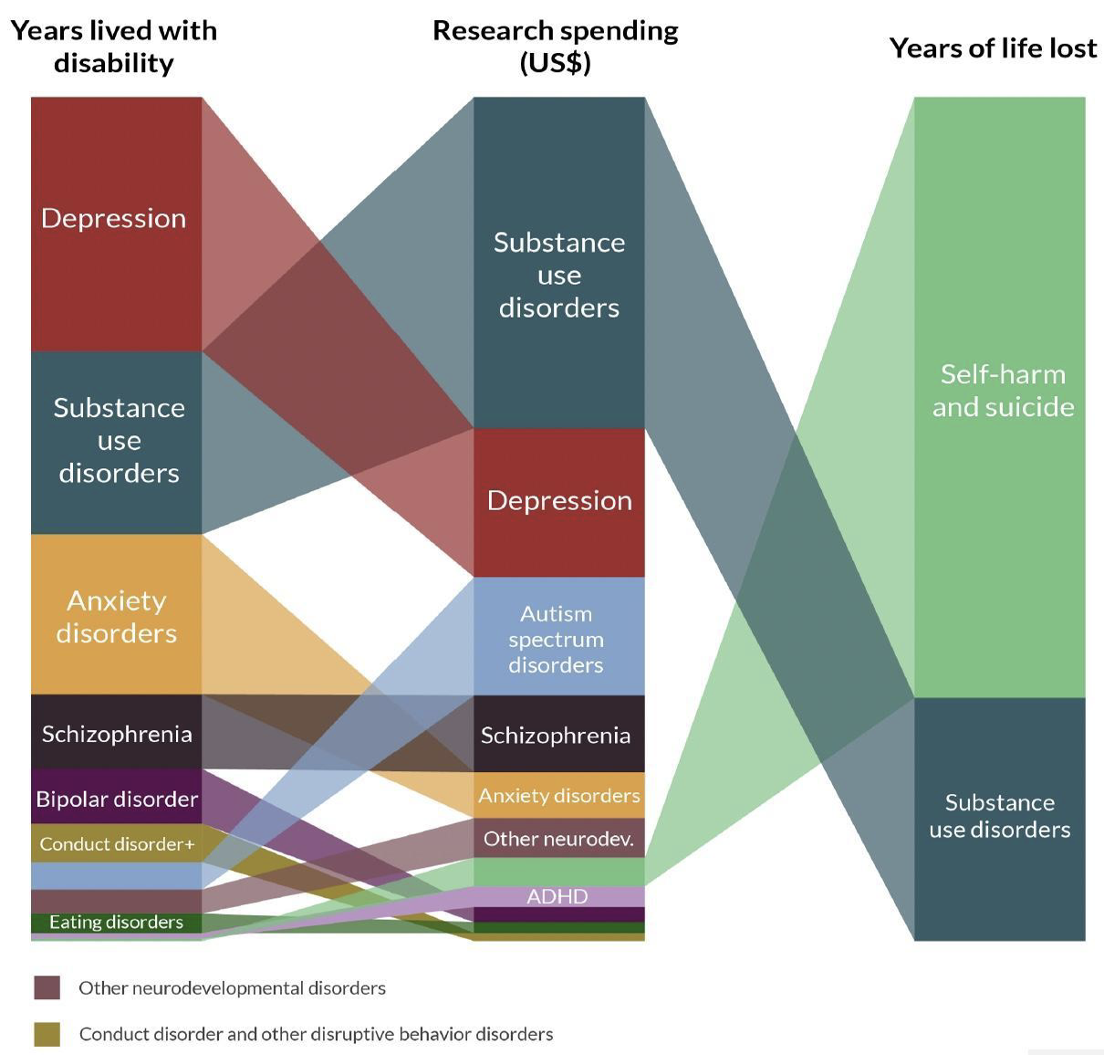 Despite causing over half of years of life lost to mental illness, they received only 4.3% of mental health research funding.