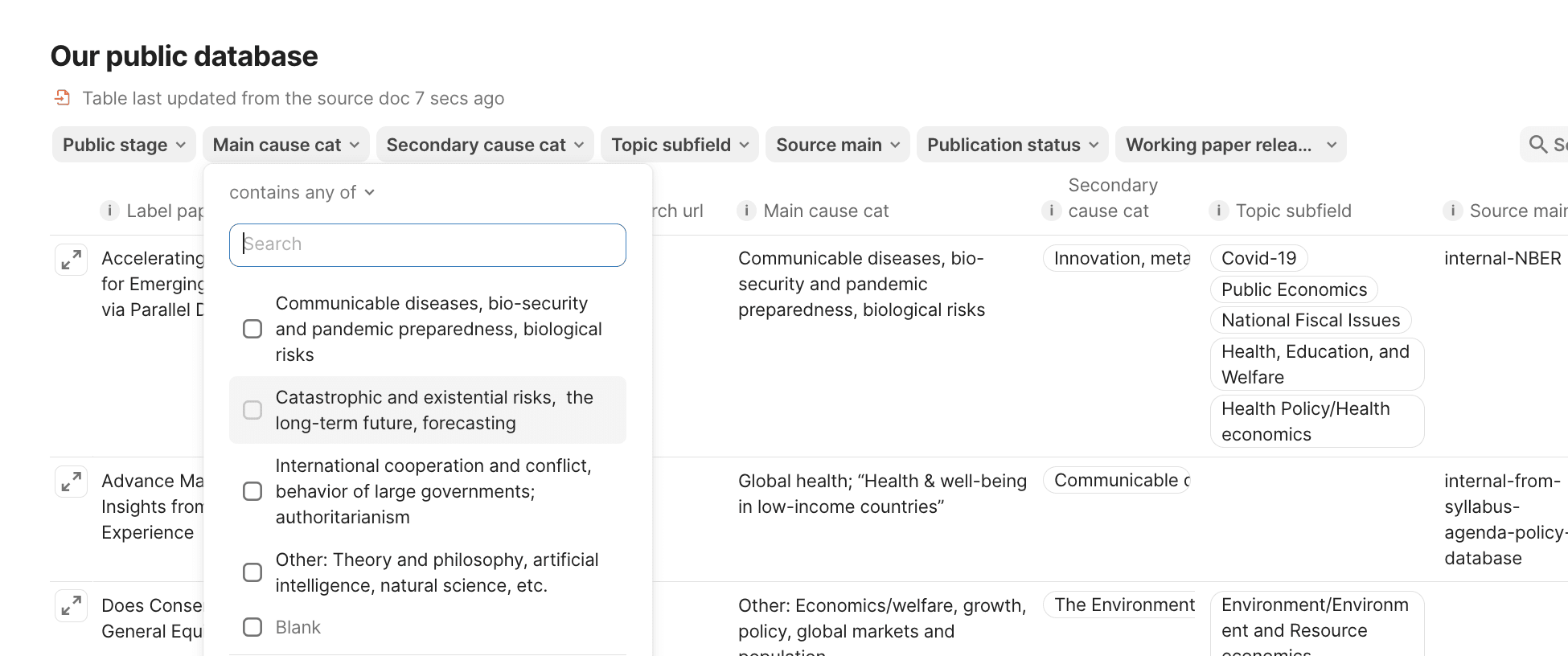 Because we’re committed to transparency and providing public goods, we’re sharing a live database of “research in our pipeline” below. This may be useful to: