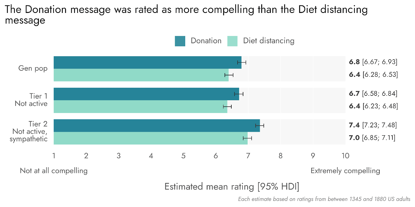 Figure 1: The Donation message was rated as more compelling than the Diet distancing message