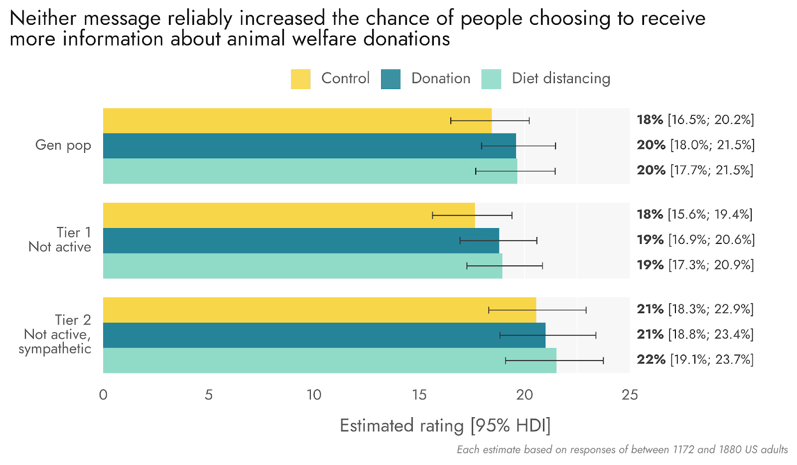 Figure 16: Neither message reliably increased the chance of people choosing to receive more information about animal welfare donations
