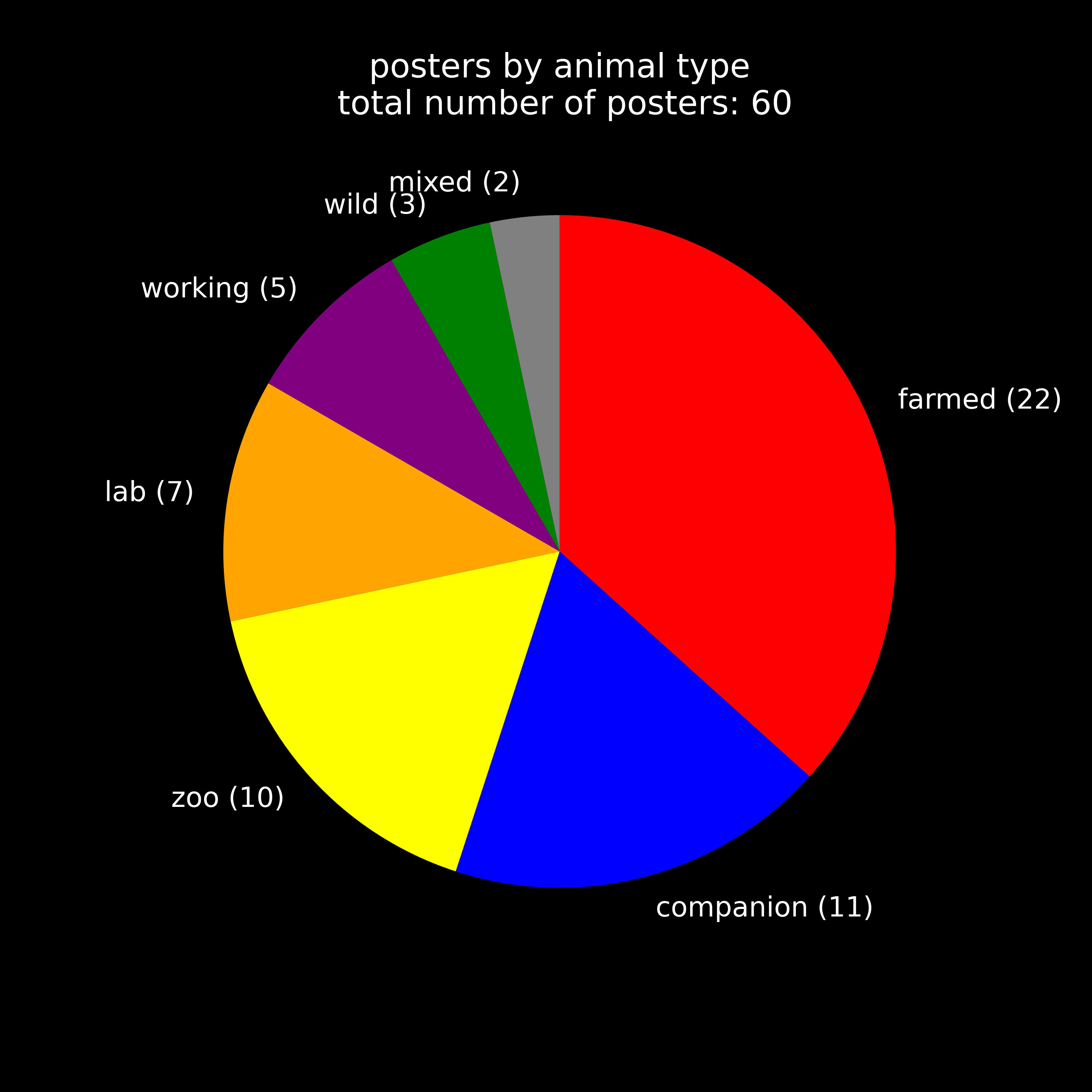 I made pie charts to see how farmed, lab, wild, companion and other animals were represented in the programme.