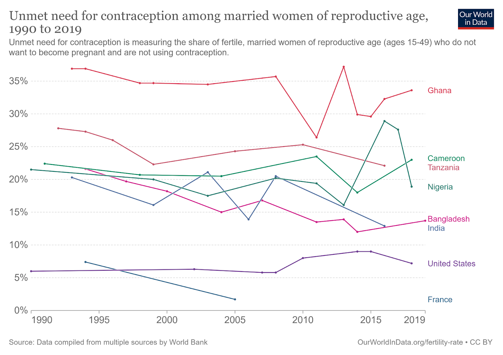 Sub-Saharan Africa is a particularly promising geography for family planning, as it has the highest fertility rate in the world as well as the highest unmet need for family planning. Contraceptive rates across Africa are less than half of the global average (Grant, 2016), and by 2030, over half of young women with unmet need for family planning will live in the region (Gahungu et al., 2021).
