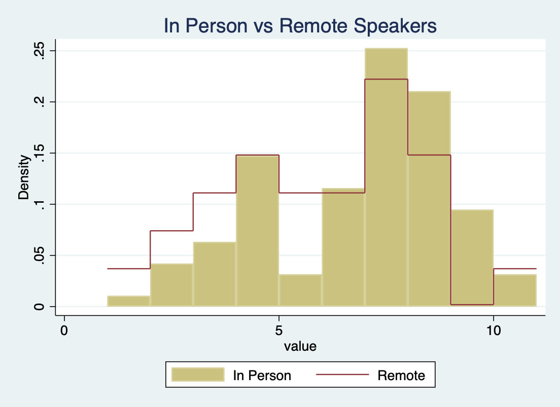 The typical scholar reported making 4.5 professional connections (std. dev. = 6.2) and meeting 5 potential research collaborators on average (std. dev. = 6.8).