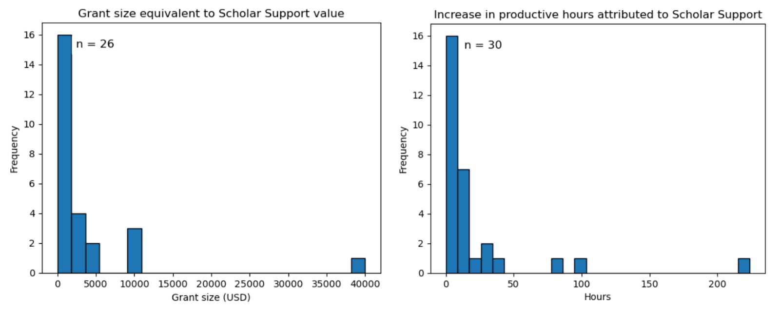 Scholars valued community, seminars and Scholar Support coaching in addition to mentorship. Scholar Support meetings were valued at $750-$3700 in grant equivalent.