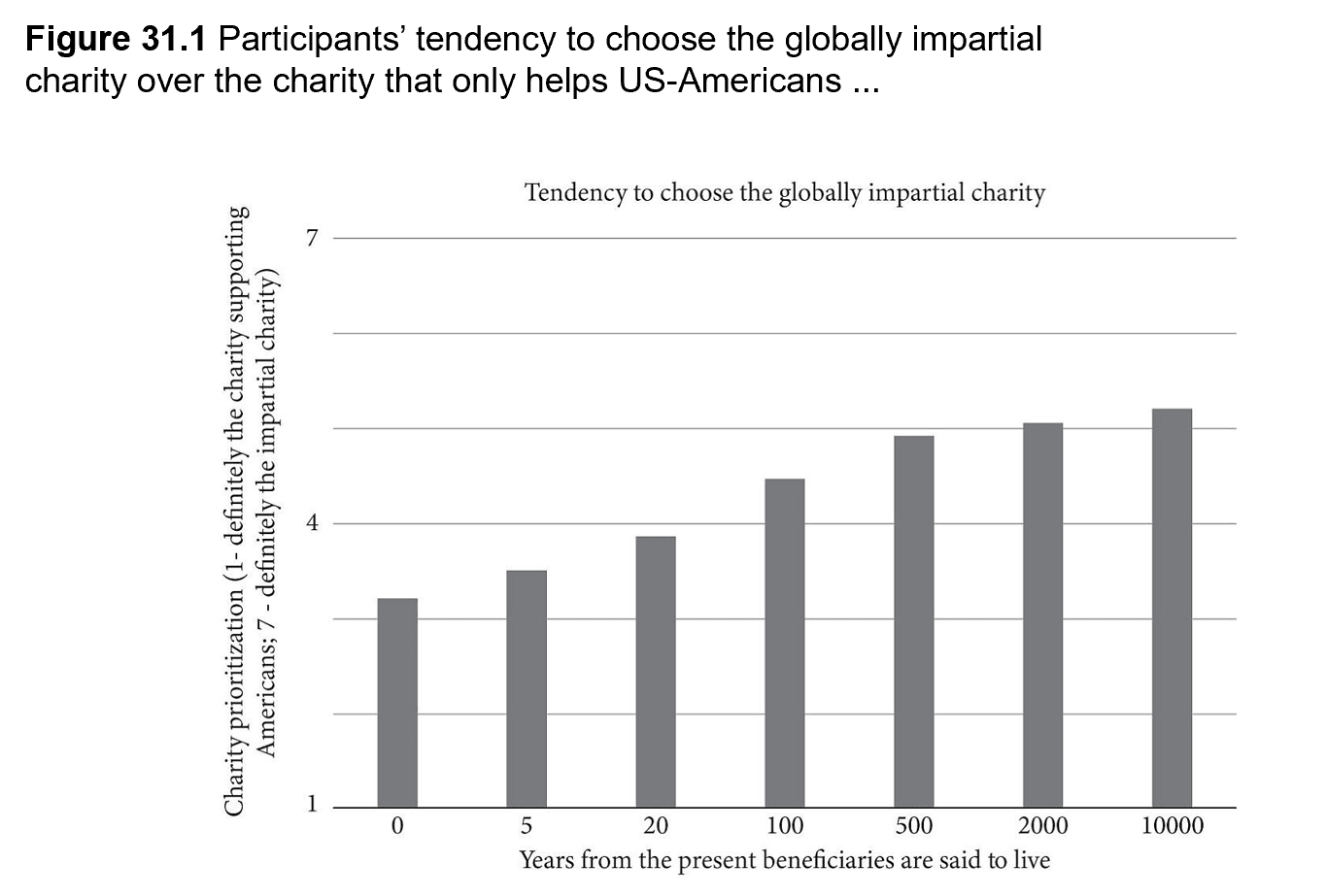 Most people are morally partial. When deciding whose lives to improve, they prioritise their ingroup – their compatriots or their local community – over distant strangers. And they are also partial with respect to time: they prioritise currently living people over people who will live in the future. This is well known from psychological research.